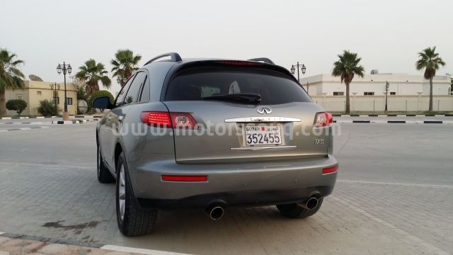 وصف : I would like to sell my 2004 infinity FX35 , the car is in excellent condition and is serviced at the dealership , it has comprehensive insurance leather seats , sunroof , cruise control and volume control on the steering wheel , has bose sound system, recently installed 4 brand new tires and done major service the mileage is around 103k miles If interested please contact me on 37737756 للبيع انفنتي بحالة ممتازة صيانة الوكالة و تأمين شامل ، السيارة فل اوبشن سيتات جلد ، زينون ، تحكم في السرعة و الصوت من السكان ، صندوق شفط ، رابين من اصل على الجامات الخلفية ، فتحة سقف و شاشة معلومات. توي امبدل إليه 4 تواير و سويت ماجر سيرفس للاتصال 37737756
