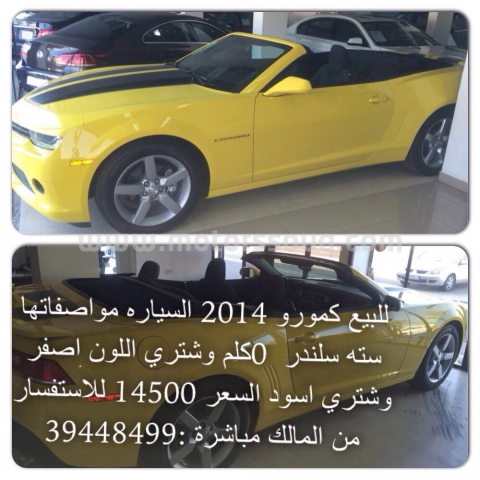 وصف : للبيع كمورو 2014 السياره مواصفاتها سته سلندر 0كلم وشتري اللون اصفر وشتري اسود السعر 14500