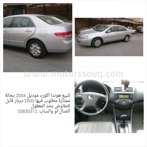 وصف : للبيع هوندا اكورد موديل 2004 بحالة ممتازة مطلوب فيها 2500 دينار قابل للتفاوض بحد المعقول
