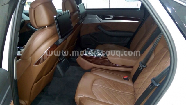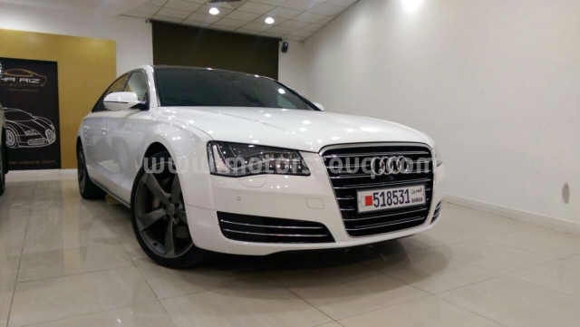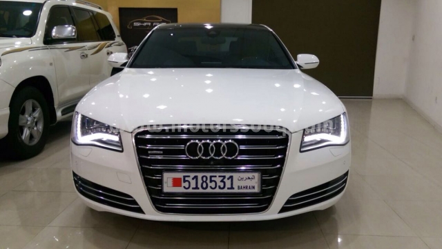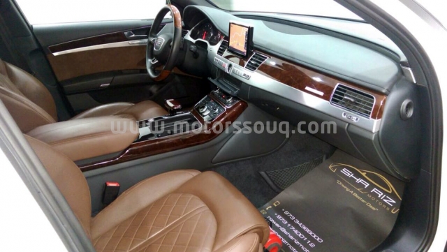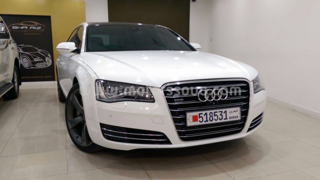 - وصف : Audi A8 L 4.0L Twin Turbo V8 2013 Model "Fully Loaded" Details Year 2013 Kilometers 38,000 km Neighbourhood Zinj, Manama Price BD 26,000 Model Audi A8 L Engine Size 3901-4000CC Easy Installment BD 485/Month For 5 Years Requirements for installment: 1. CPR COPY 2. PASSPORT COPY 3. SALARY CERTIFICATE 4. PAYSLIP 5. 3 MONTHS LATEST (SALARY ) BANK STATEMENT 6. Salary starting 250 bd or more... Description #Audi A8 L 4.0L Twin Turbo V8 in Excellent condition. #White Exterior with Broen Leather Interior. #19-inch alloy wheels. #Multi-level heating Driver and passenger seat. #12 -way power driver and passenger seat. #Height adjustable driver and Passenger seat. #Memorized settings for 4 drivers. #Remote keyless power door locks. #Alloy, leather and wood trim on center console, doors, dash and on shift knob. #Electrochromatic inside rearview mirror. #Turn signal in mirrors. #Transmission controls and audio controls on steering wheel. #Panorama Sunroof. #Bose premium brand stereo system and 12 Bose premium brand speakers. #Memory card slot, USB connection, Radio data system. #Navigation with voice activation navigation system. #Rear Seats Screen. #Remote trunk release. #Front and rear parking sensors. #Sun sensor. #Rear view camera. #Daytime running lights. #Self-leveling headlights. #Night Vision Assistant. #Stability control and Traction control. #4-wheel ABS and much more. #2013 Model with 38,000 km. Feel free to call for any query on #34366000 *FINANCE SUBJECT TO BANK APPROVAL, CALCULATION IS BASED ON NIL DOWN PAYMENT* * www.facebook.com/sharizmotors * www.instagram.com/sharizmotors * www.twitter.com/sharizmotors