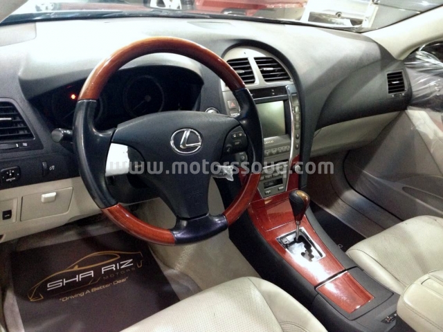 - وصف : Lexus ES-350 3.5L V6 2008 Model in Mint Condition Details Year 2008 Kilometers 70,500 km Neighbourhood Zinj, Manama Price BHD 6,000 Model Lexux ES-350 Engine Size 3501-3600cc Description #Lexus ES-350 3.5L V6 engine. #Black Exterior with Beige Leather Interior. #17-inch Alloy wheels with all-season tire. #8-way power driver and passenger seat. #Wood trim on dash, center console, doors. #Remote keyless power door locks. #AM/FM stereo, USB connection, Auxiliary audio input, Bluetooth wireless. #Dual zone climate controls - driver and passenger. #Stability control and Traction control. #Low fuel level warning. #Reverse camera, Intuitive Parking Assist. #Post-collision safety system. #Tire pressure monitoring. #4-wheel ABS. #Dual front and dual rear side-mounted airbags and much more. #2008 Model with only 70,500 km. Feel free to call for any query on #00973-17400112, 34366000 * www.facebook.com/sharizmotors * www.instagram.com/sharizmotors * www.twitter.com/sharizmotors