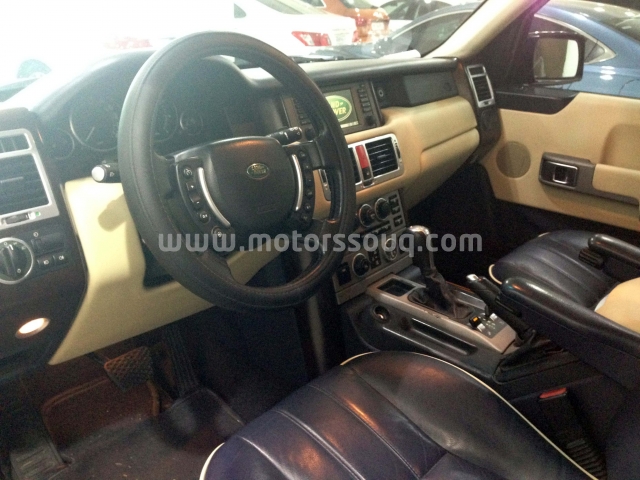 وصف : RANGE ROVER SuperCharged 4.4L V8 2004 Model Details Year 2004 Kilometers 143,000 km Neighbourhood Zinj, Manama Price BD 5,300 Model Range Rover SuperCharged Engine Size 4000+CC Description #Land Rover Range Rover SuperCharged 4.4L V8 engine. #Navy blue Exterior with Blue Interior. #19-inch wheels. #Bi-xenon headlights. #Adjustable air suspension, front and rear parking sensors. #Power front seats, power tilt/telescoping steering column. #Dual-zone automatic climate control. #Bluetooth with CD changer and an auxiliary audio jack. #Antilock disc brakes , hill-descent control. #Front side airbags and much more. #2004 Model with 143,000 km. Feel free to call for any query on #00973-17400112, 34366000