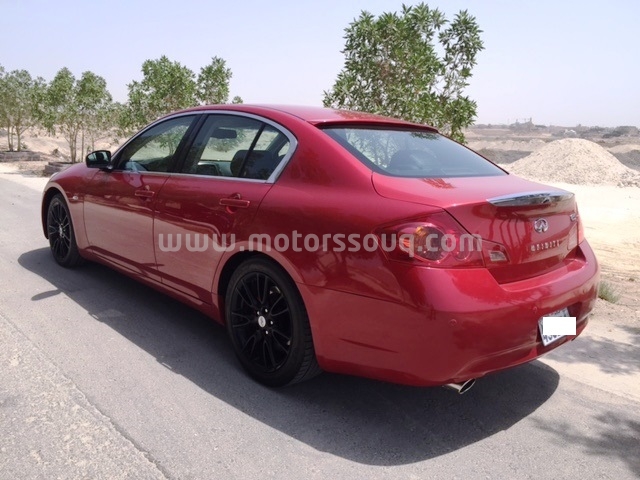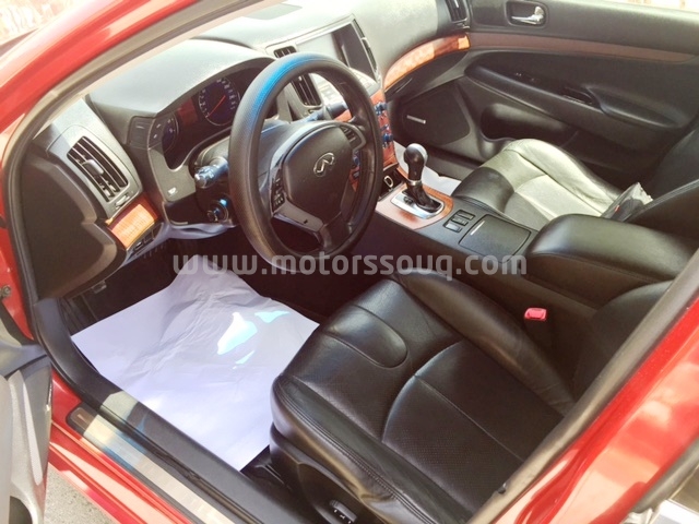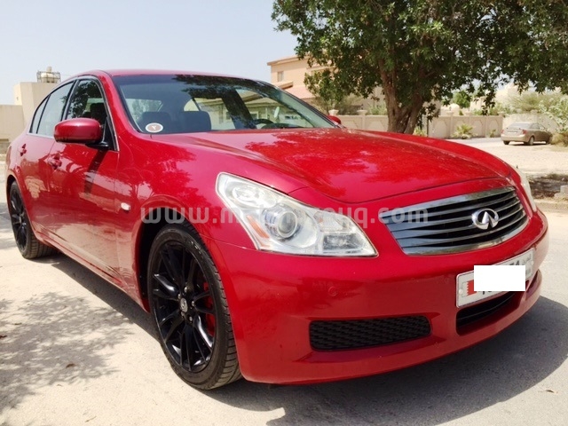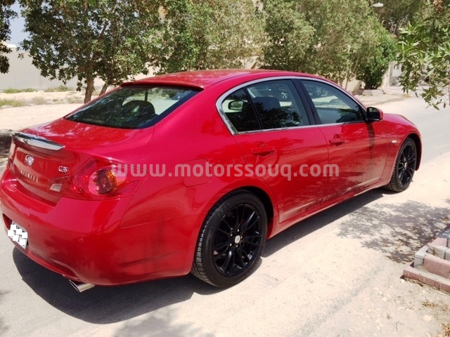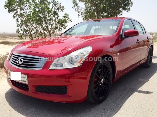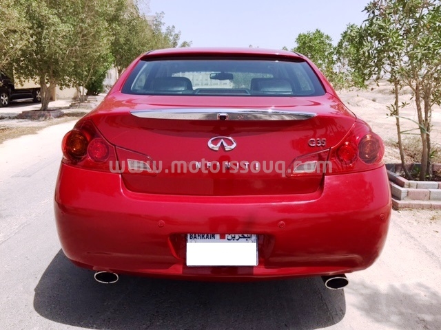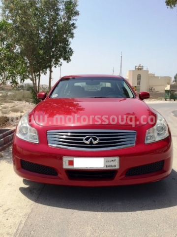 وصف : Infinity G35 sedan 2007 model in super condition for sale expat owned Red color outside and Black leather inside 4 door sedan Fully automatic - (gear auto) with 5 speed triptronic with f1 shifters Reverse camera with LCD also with front n rear parking sensors DVD with 2 headrest monitors with surround sound amplifiers fixed Insurance & reg valid till Feb 2016 Xenon lights- auto lights- auto wipers Rims and calipers painted with AWRS with 2 yrs warranty Bose 8 speaker system with 6 CD MP3 with AUX option New tyres all 4 of them bills available New battery bills available New break pads, engine oil, gear oil , AC evaporator etc. bills available Full option Sunroof Power seats / mirrors / ABS / EBD etc... Car in fantastic condition very well maintained... Price 4900/- BD if serious pls call 35527172