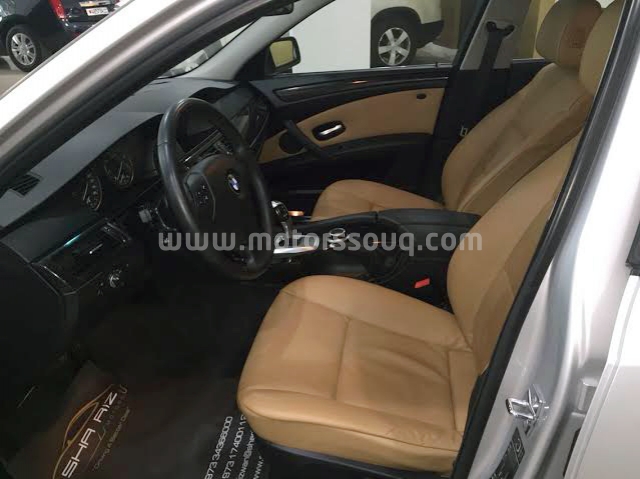 وصف : BMW 530i 3.0L V6 2008 Model Details Year 2008 Kilometers km 88,000 Neighbourhood Zinj, Manama Price BD 6,500 Model BMW 530i Engine Size 3001-3100CC Description #BMW 530i 3.0L V6 in Good condition. #Silver Exterior with Brown Leather Interior. #17-inch alloy wheels. #10-way power-adjustable driver and passenger seat. #AM/FM stereo. #Dual zone climate controls. #4-wheel ABS, stability and traction control. #Parking Assistant and much more. 2008 Model with 88,000 km. Feel free to call for any query on #34418527