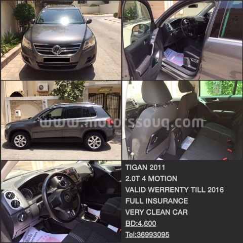 - وصف :VOLKSWAGON TIGUAN MODEL:2011 2.0 TURBO 4 WHEEL DRIVE VALID WERRENTY TILL 2016 FULL AUTO REVERSE CAMERA FULL INSURANCE FREE ACCIDENT 4 NEWS TYRES BD;4,600 CONTACT:39479040
