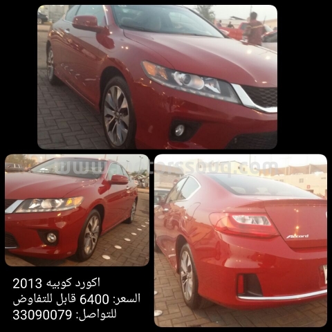 وصف :هوندا.. اكورد كوبيه 2013 ..بحالة جيده.. السعر 6400 قابل للتفاوض ..