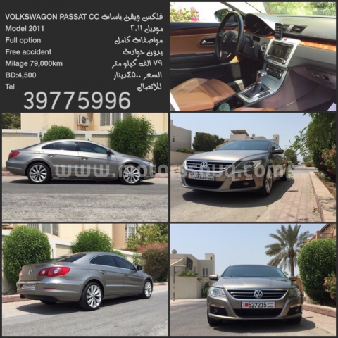 وصف :VOLKSWAGON PASSAT CC MODEL.2011 2.0L TURBO FULL OPTION FREE ACCIDENT FULL INSURANCE MILAGE:79,000KM BD:4,500 39479040