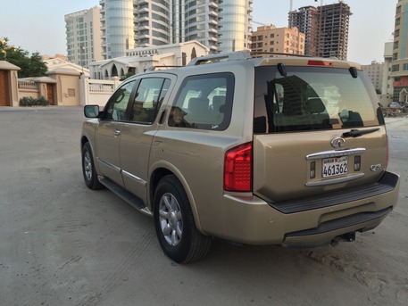 Make and Model: Infiniti QX56 Year: 2005 Transmission: automatic Odometer: 175000 KM Urgent sale Infiniti Qx56 model 2005 Fully loaded with sunroof lather sets dvd player camera engine size V8 5.6ltr k.m 175000 fully agent service Passing insurance until October 2016 Car in good condition Price 3900 BD For more information please Call 33888952