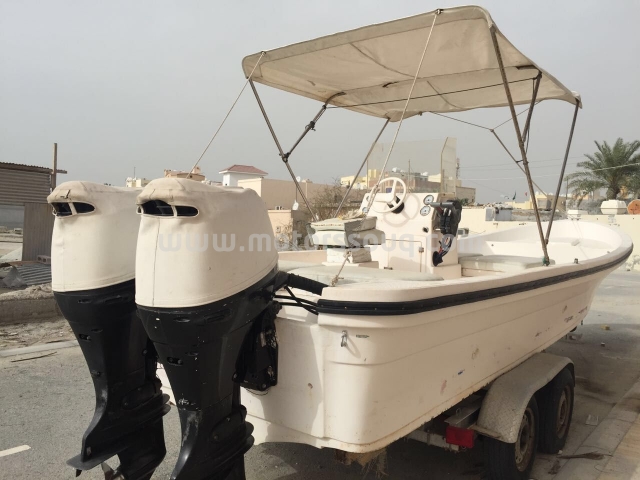 وصف :عليه مكاين ١٤٠ ثنتين سوزكي موديل ٢٠٠٥ حجم الطراد ٢٧ قدم الشرق الاوسط يوجد خزانين للبترول ومظلة متحركة مع التيلر (المنيوم) حالة الطراد ممتازة