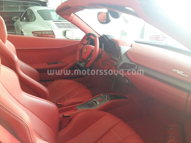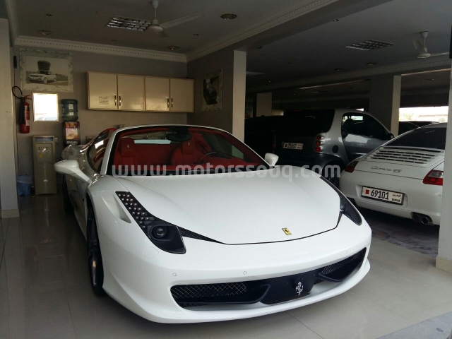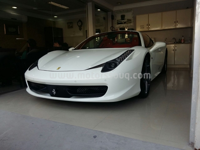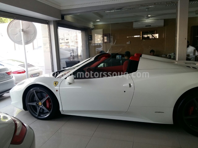 وصف :للبيع فيراري 458 سبايدر موديل 2015 ابيض من داخل احمر قاطع 7000 تامين شامل على الضمان 3 سنين والسيرفس مجان 7 سنين من غير حوادث نهائيا استخدام شخصي من وكاله البحرين السعر 74 الف دينار.. من غير اضافات