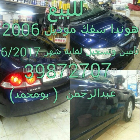 وصف :For sale Honda civic model 2006 passing 7/17 للبيع هوندا سيفيك موديل ٢٠٠٦ تامين ٧/١٧