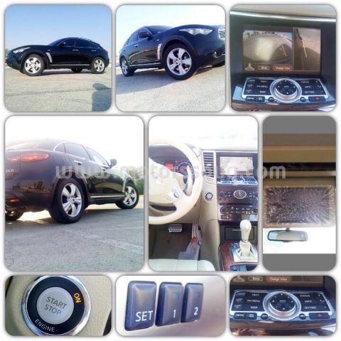 موصفات: كامل المواصفات كراسي جلد وفل اتومايتك -تحكم بالسكان - فتحه - رنقات - كشافات - شاشه - كاميرا - GPS - كامرة جانبية - نظام التبريد والتسخين في المقاعد - تثبيت السرعة - مفتاح ذكي - تشغيل بصمة - وجميع مواصفات FX 35 المعروفة - ديفي دي اصل - نظام تثبيت حركة المقاعد