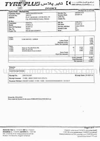 تم عمل صيانة وتبديل زيت مكينة في الوكالة مؤخراً