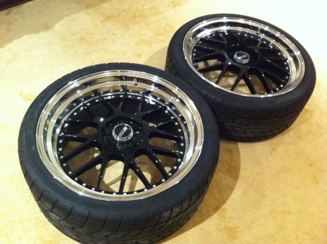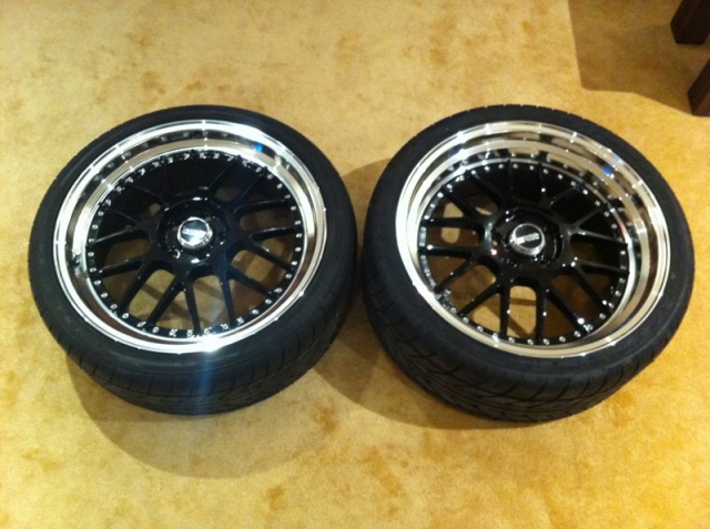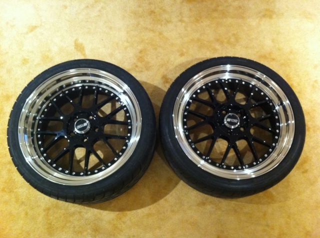 وصف :SSR MS1 دبل شمبر مقاس 19" مقاس لبلوط 114.3 الامامي 8.0 و الخلفي 9.0 مع تواير نيتو جدد مقاس التواير الامامي 235/35/19 و الخلفي 265/30/19 .