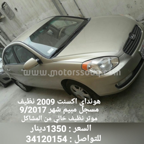 وصف :هيونداي اكسنت 2009 اللون ذهبي داخل بيج مسجل مبيبم 9 / 2017 بحاله ممتازه السعر: 1350 دينار