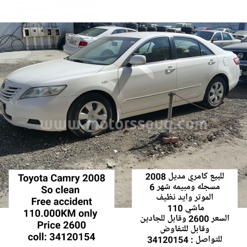 وصف : للبيع كامري مديل 2008 مسجله ومبيمه شهر 6 الموتر وايد نظيف ماشي 110 السعر 2600 وقابل للجادين