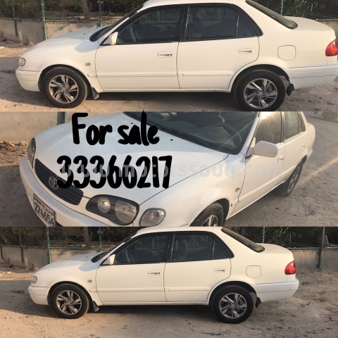 وصف :للبيع تيوتا كورولا لون ابيض موديل 2000 سعر المطلوب 800دينار وقابل لتفاوض بطارية جديده وتواير جدد مع الرقات مسجل ومبيم شهر11 موتر بحالة ممتازة
