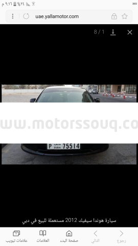 وصف :للبيع هوند سيفيك ٢٠١٢ خالي من حواث ماشي ٧٠ الف موتر من وكالة البحرين