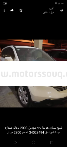 وصف :للبيع سياره crv موديل 2008 بحاله ممتازه للتواصل جوال 34023494 السعر 2800 دينار