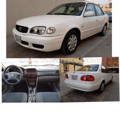 للبيع كورولا موديل 2000 جدا نظيف وبحاله جدا ممتازه وبدون حوادث أو مشاكل ميكانيكيه تم مؤخرا عمل صيانه شامله لسياره حجم المكينه 1.8 مسجله ومؤمنه شهر 7 ثاني مستخدم لسياره ماشيه 218 ألف فقط السعر المطلوب من الآخر 1000 دينار وغير قابل للتفاوض لتواصل على 33077523