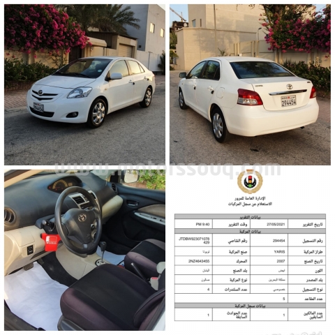 وصف : للبيع تويوتا يارس موديل 2007 قطعت 134,000 km التسجيل لغاية 8/2021 بحالة ممتازه لا تحتاج اي صيانة السعر 1350 دينار