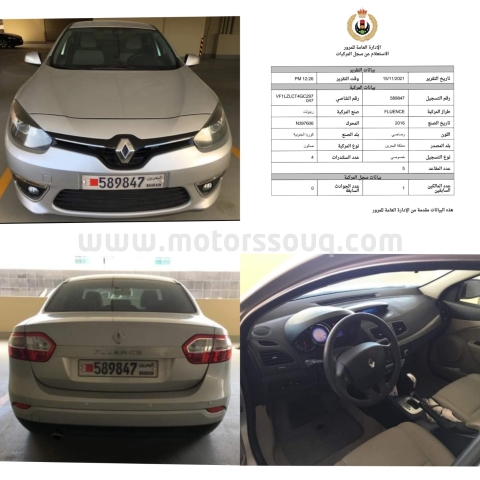 - وصف :للبيع رينو فولنس موديل ٢٠١٦ ماشيه ٧٢ الف كم سيرفس الوكالة بحاله ممتازه جدا بدون حوادث ميد ابشن محرك 2.0 قير 6 تباديل CVT بلوتوث Daytime LED light سنسرات تسجيل ٦/ ٢٠٢٢