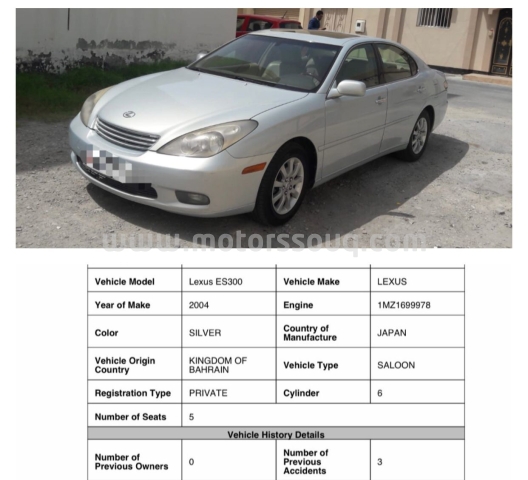 وصف :Lexus ES300 Model 2004 210000km driven Excellent Condition. Single Owner. Price 1,700