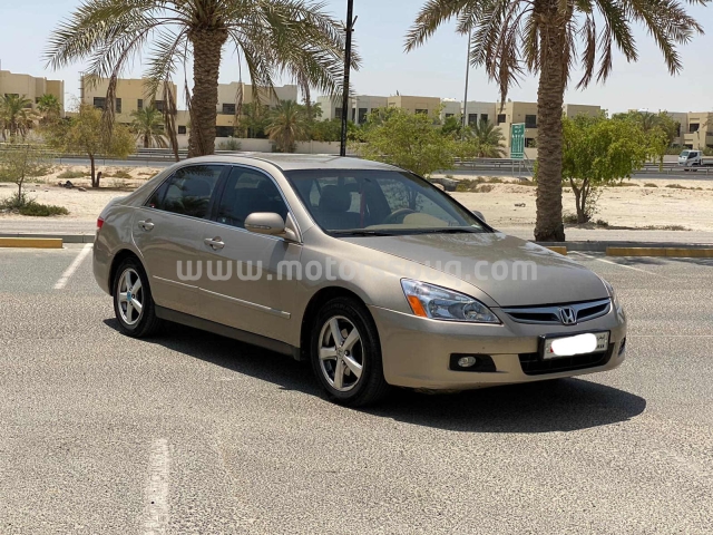 وصف :Honda Accord 2005 (Gold) Mileage: 237650 Km, Mid Option: Camera, Alloy Wheel, Screen, 4 Cylinders, 2.4 L Engine, 5 Seats, Price : 1200 BD (Negotiable) Insurance Till : Apr-2023, ------------------------------------------------- Contact: 36363465 Instagram: hamadcars.bh ------------------------------------------------
