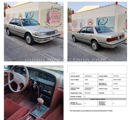 وصف :Toyota Cressida GL Model 1996 95000km driven Excellent Condition. Price: BHD 1,200/-