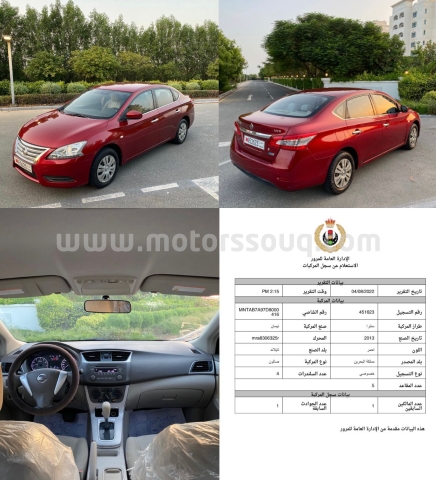 وصف :نيسان سنترا موديل 2013 ماشيه ١٠٠ الف 1.8 وكالة البحرين مالك واحد صبغ وكالة من غير حوادث بحالة الوكاله مسجل مبيمه سنة السعر 1,950 وقابل