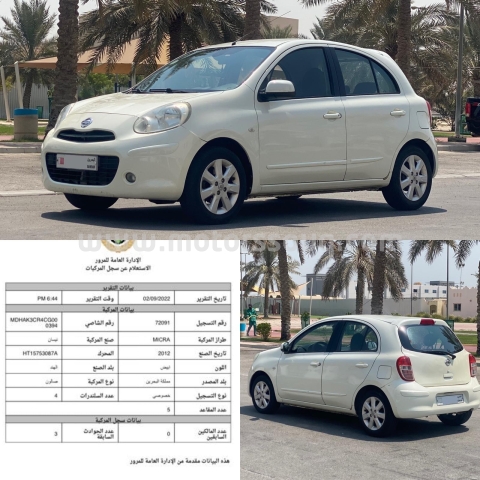 وصف :نيسان : ميكرا موديل : 2012 فول أبشن المالك الأول شهر : 8-2023 السعر : 1,500