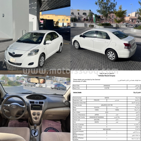 وصف :تيوتا يارس موديل 2012 بحالة الوكالة , صبغ وكاله من غير حوادث , ثاني مالك الموتر فول بيمه , تم تبديل جميع القطع الاستهلاكيه تواير جدد السعر 2,200 وقابل