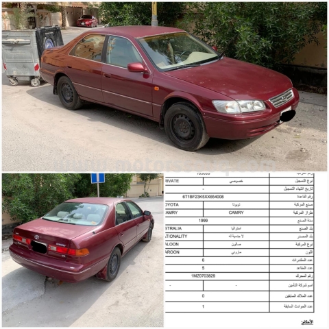 وصف :للبيع v6 تويوتا كامري موديل:1999 مسجل مأمن:3/2023 موصفات مالك واحد