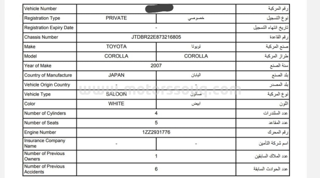 وصف :2007 Toyota Corolla for Sale - Excellent Condition, One Owner, Low Price