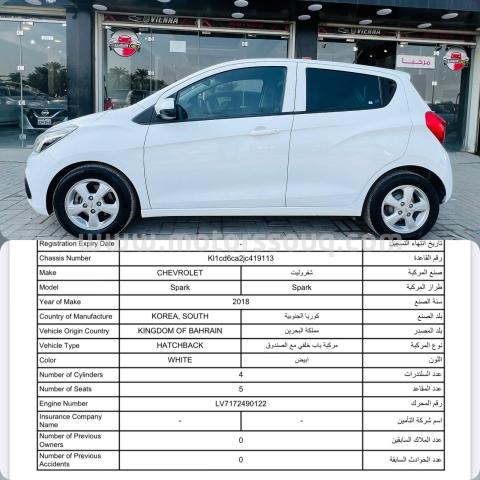 وصف :شفرولية سبارك موديل 2018 وكالة البحرين بحالة جدا ممتازة ماشي 80 الف مسجل مبيم الموصفات تحكم من السكان / بلوتوث ABS USB / رنقات
