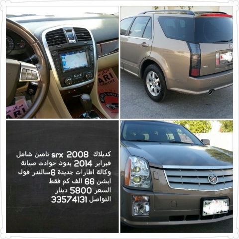 وصف :كاديلاك srx موديل 2008 بحالة ممتازة صيانة الوكالة بدون حوادث تامين شامل فبراير 2014 - فول اوبشن - فتحة بانوراما كاملة اطارات جديدة 6 سلندر ماشية 66500 كم فقط السعر 5800 دينار بحريني