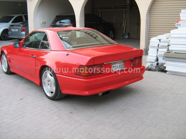 - وصف : Mercedes SL 500 Model 1991 AMG Kit Red color outside and Beige inside Soft top works Excellent just service done (Hydraulics service) Hard top excellent shape Registration Expiry October 2013 Excellent Condition - runs excellent Well Maintain - All orgional parts Regular service done New Tyre New Battery Good sound System JVC Air condition is excelent cold New full exhaust system were fixed-three month ago from Gulf Exhaust Just full overhaul the steering box and Suspension All breacks were replaced New raditor which costs BD 185 And much much more is an excellent car with excellent Horse Power For more details please contact me on 39448491-Serious buyers only No Time Wasters