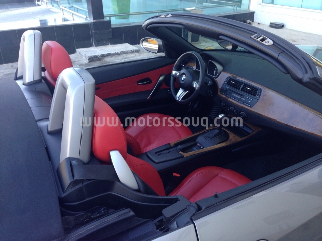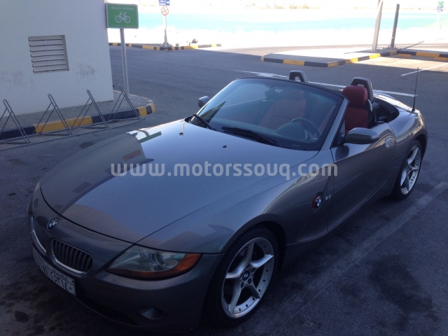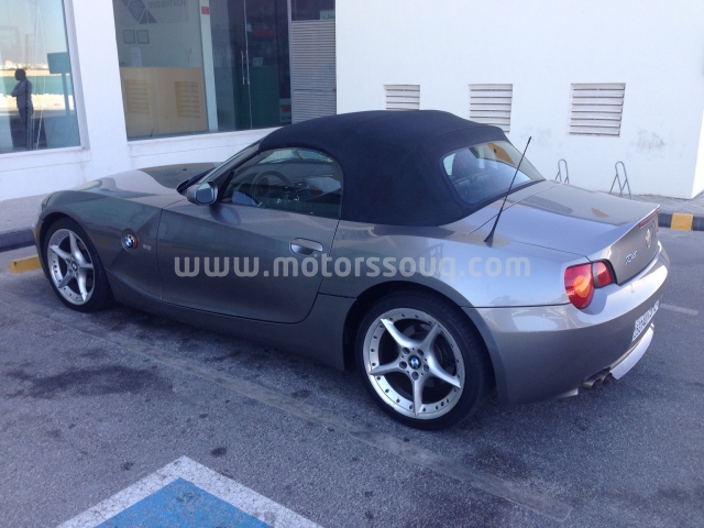 وصف : BMW Z4 3.0i 2005 6 cylinders 3.0 liters soft top convertible in excellent condition, 103000 km xenon lights fog lights multifunctional leather sport steering wheel CD changer HI Fi sound system. Chrome line interior fine Wooden trim. And much more Grey outside with black soft top and red leather fully electric seats. 1 year full insurance 5400 BD negotiable 33355790