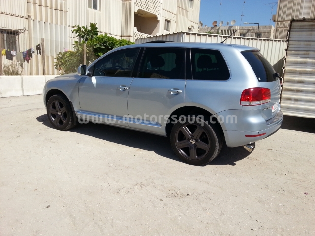 وصف :jeep volkswagen touareg 2006 special order and fully loaded option sky blue colour very good condition Very clean out side and in side leather seats orange colour electronic seats memory for save adjust Screen navigation camera tv exneon lights sencer park all front and rear and more more ...... option Renyow to next year 2014 September with assistant road Brice : 4700 bd Call : 3374152