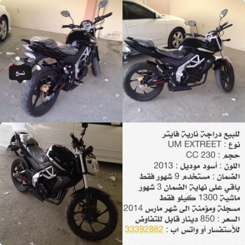 - الاسم : للبيع دراجة نارية فايتر نوع : UM EXTREET